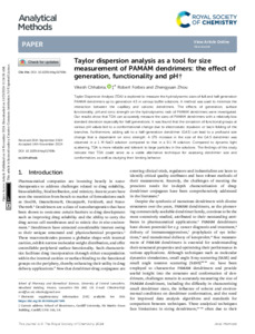 Chhabria, Vikesh, Forbes, Robert and Zhou, Zhengyuan (2025) Taylor dispersion analysis as a tool for size measurement of PAMAM dendrimers: the effect of generation, functionality and pH. Analytical Methods, 17 (1). pp. 170-177. ISSN 1759-9660