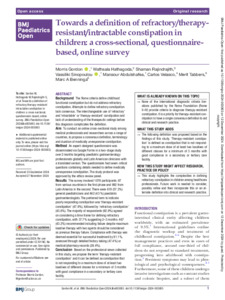Towards a definition of refractory/ therapy-resistant/ intractable constipation in children: A cross-sectional, questionnaire-based, online survey.