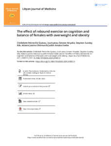 Balance issues have been reported to be common among females with overweight or obesity with associated fall risks. Despite the increasing reports of the negative impacts of obesity on balance and cognition, there is a scarcity of research aimed at evaluating effective interventions. To examine the effects of rebound exercises on cognition and balance among females with overweight and obesity. This Quasi-experimental study used the purposive sampling method to recruit 20 female students (aged 17–35 years) with overweight and obese at the Evangel University Akaeze, Ebonyi State Nigeria. Rebound exercise intervention was administered to all participants at the gym for 30 minutes in each session, three times a week for six weeks, while their cognitive performances, stationary balance, and dynamic balance were measured pre-and post-trial using Trail Marking Test Apparatuses, Unilateral Pedal Tests, and Meter Backward Walk Test respectively. There was a significant (p < 0.001) difference in the participants’ cognition values across weeks 1, 3, and 6 with a progressive improvement over time. There was also a significant (p < 0.05) difference in the participants’ static and dynamic balance values across weeks 1, 3, and 6 with a progressive improvement in balance performance over time. Rebound exercise significantly improved the cognition and balance of females with overweight or obese. This finding suggests a promising intervention to improve balance and cognitive-related problems in this population.