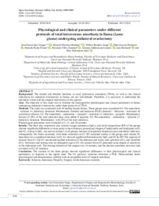 Aim: The objective of this study was to evaluate the intraoperative physiological and clinical parameters in llamas undergoing unilateral ovariectomy, under three protocols of TIVA.