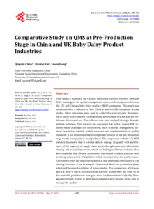 Comparative Study on QMS at Pre-Production Stage in China and UK Baby Dairy Product Industries.