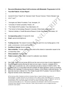 Recurrent Morphoeic Basal Cell Carcinoma with Metastatic Progression in A 34-Year-Old Patient: A Case Report.