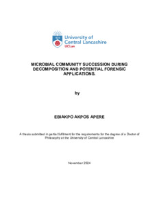 Apere, Ebiakpo Akpos (2024) MICROBIAL COMMUNITY SUCCESSION DURING DECOMPOSITION AND POTENTIAL FORENSIC APPLICATIONS. Doctoral thesis, University of Central Lancashire.
