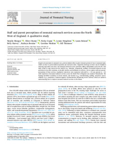 Morgan, Natalie, Hamer, Oliver, Gupta, Richa, Houghton, Louise, Boland, Laura, Harvey, Kelly, Berzins, Kathryn orcid iconORCID: 0000-0001-5002-5212, Watkins, Caroline Leigh orcid iconORCID: 0000-0002-9403-3772 and Thomson, Gill orcid iconORCID: 0000-0003-3392-8182 (2025) Staff and parent perceptions of neonatal outreach services across the North West of England: A qualitative study. Journal of Neonatal Nursing, 31 (2). p. 101612. ISSN 1355-1841