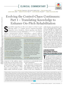 Taberner, Matt, Allen, Tom, O’keefe, Jason, Chaput, Meredith, Grooms, Dustin and Cohen, Daniel Dylan (2025) Evolving the Control-Chaos Continuum: Part 1 – Translating Knowledge to Enhance On-Pitch Rehabilitation. Journal of Orthopaedic & Sports Physical Therapy, 55 (2). pp. 78-88. ISSN 0190-6011