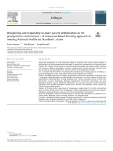 Recognising and responding to acute patient deterioration in the perioperative environment – A simulation-based learning approach to meeting National Healthcare Standards criteria.
