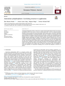 Hansen-Bruhn, Iben, Craig, Jessica, Hinge, Mogens and Hull, T RIchard (2025) Ammonium polyphosphates: Correlating structure to application. European Polymer Journal, 223 . ISSN 0014-3057