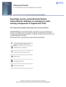 Knowledge, Practice and Professional Identity: Unthreading the Challenges of Contemporary Police Tutoring Arrangements in England and Wales.