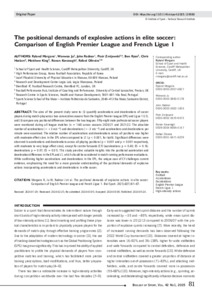 Morgans, Ryland, Ju, Wonwoo, Radnor, John, Zmijewski, Piotr, Ryan, Ben, Haslam, Chris, King, Matthew, Kavanagh, Ronan and Oliveira, Rafael (2024) The positional demands of explosive actions in elite soccer: Comparison of English Premier League and French Ligue 1. Biology of Sport, 42 (1). pp. 81-87. ISSN 0860-021X