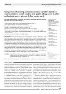 Comparison of running and accelerometry variables based on match outcome, match location and quality of opponent in elite professional soccer players. A five-season study