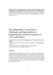 Perez-Vega, Rodrigo, Borguei-Razavi, Niloofar, Fisk, Malcolm orcid iconORCID: 0000-0003-1602-8393 and Wigley, Kate (2024) The Independent Living Project: Challenges and Opportunities in Implementation and the Evaluation of AAL technologies. In: Proceedings of the Joint Visuaal-goodbrother Conference on Trustworthy Video- and Audio-based Assistive Technologies. Zenodo, pp. 75-78.