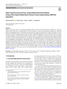 Motor Speed Control of Four-wheel Differential Drive Robots Using a New Hybrid Moth-flame Particle Swarm Optimization (MFPSO) Algorithm.
