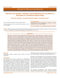 Adediran, Bukola Ojo, Adedire, Oluwafemi Michael and Aina, Adeyinka (2025) Selection and Genetic Variation in Okra (Abelmoschus esculentus L.) Genotypes in a Rainforest Agroecology. Chemical and Pharmaceutical Research, 7 (1). pp. 1-5. ISSN 2689-1050
