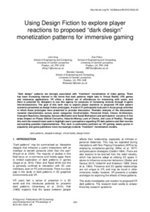 Using Design Fiction to explore player reactions to proposed “dark design” monetization patterns for immersive gaming.
