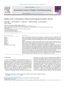 Speech-language Therapists (SLTs) are specialists in communication, feeding and swallowing as core members of the paediatric tracheostomy multidisciplinary team (MDT). Inconsistent tracheostomy care leads to staff and family frustration and delayed intervention. Little is known about international SLT tracheostomy practices.