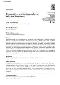 Business schools are not neutral purveyors of teaching and research about how to organise. More often than not, they sell a very particular form of knowledge and act as outlets for a form of life in which a cooperative economy is ignored. Using international evidence, our paper shows that cooperatives lack adequate intellectual support from academia in terms of research or education. We explore the disconnect between academia and the cooperative economy in a search for explanations and justifications. Our analysis suggests that this state of affairs denies the cooperative sector an opportunity to both address its skill shortages and acquire the organisational capabilities needed to boost the impact of cooperative enterprises. Equally important, this normalises the situation where business schools can continue to ignore alternative business models. We conclude by suggesting that there would be societal and scholarly gains from accepting the cooperative sector as a legitimate and valuable constituent of any modern economy, and that this should be reflected in the teaching and research of business schools.