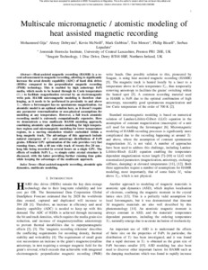 Multiscale micromagnetic / atomistic modeling of heat assisted magnetic recording.