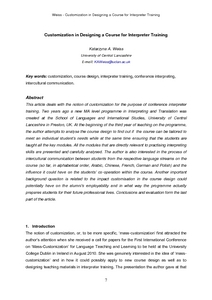 Weiss, Katarzyna Anna (2012) Customization in Designing a Course for Interpreter Training. Intercultural Promenades, 1 (1). pp. 7-20.