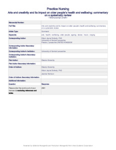 Arts and creativity and its impact on older people’s health and wellbeing: commentary on a systematic review.