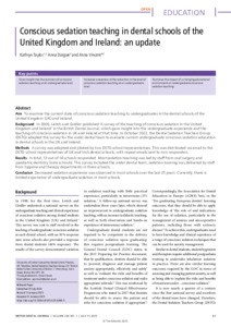 Background In 2000, Leitch and Girdler published ‘A survey of the teaching of conscious sedation in the United Kingdom and Ireland' in the British Dental Journal, which gave insight into the undergraduate experience and the teaching of conscious sedation in UK and Ireland at that time. In October 2022, the Dental Sedation Teachers Group (DSTG) adapted this survey for the wider dental team to evaluate current undergraduate conscious sedation education in dental schools in the UK and Ireland.