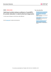 Optimised solution-phase synthesis of NanoMIPs for protein detection in electrochemical diagnostics.