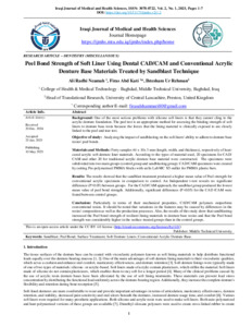 Peel Bond Strength of Soft Liner Using Dental CAD/CAM and Conventional Acrylic Denture Base Materials Treated by Sandblast Technique.