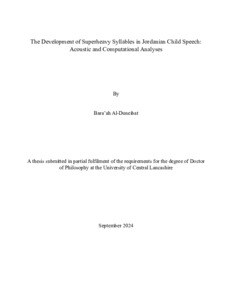 Al-Duneibat, Baraah Khalid ali (2025) The Development of Superheavy Syllables in Jordanian Child Speech: Acoustic and Computational Analyses. Doctoral thesis, University of Central Lancashire.