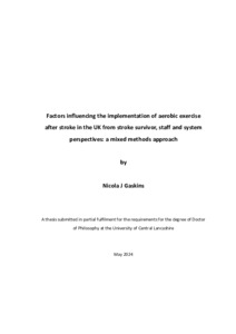 Gaskins, Nicola Jean orcid iconORCID: 0000-0002-3412-7785 (2025) Factors influencing the implementation of aerobic exercise after stroke in the UK from stroke survivor, staff and system perspectives: a mixed methods approach. Doctoral thesis, University of Central Lancashire.