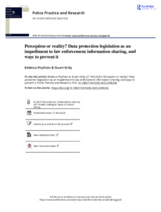 Phythian, Rebecca and Kirby, Stuart (2025) Perception or reality? Data protection legislation as an impediment to law enforcement information sharing, and ways to prevent it. Police Practice and Research, 26 (5). pp. 570-587. ISSN 1561-4263