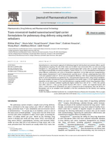 Khan, Iftikhar, Sabu, Maria, Hussein, Nozad, Omer, Huner, Houacine, Chahinez, Khan, Wasiq, Elhissi, Abdelbary and Yousaf, Sakib (2025) Trans-Resveratrol-Loaded Nanostructured Lipid Carrier Formulations for Pulmonary Drug Delivery Using Medical Nebulizers. Journal of Pharmaceutical Sciences, 114 (5). p. 103713. ISSN 0022-3549