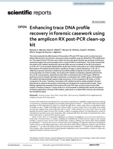 Aljanahi, Naeema S., Alketbi, Salem K, Almheiri, Maryam M., Alshehhi, Suaad A., Sanqoor, Afra N. and Alghanim, Hussein J. (2025) Enhancing Trace DNA Profile Recovery in Forensic Casework Using the Amplicon RX Post-PCR Clean-up Kit. Scientific Reports, 15 .