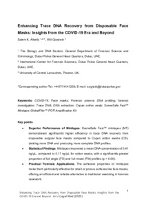 Enhancing trace DNA recovery from disposable face masks: insights from the COVID-19 era and beyond.