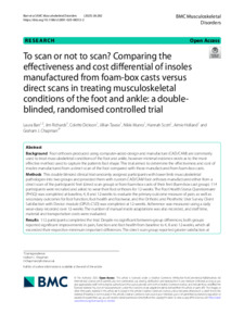 To scan or not to scan? Comparing the effectiveness and cost differential of insoles manufactured from foam-box casts versus direct scans in treating musculoskeletal conditions of the foot and ankle: A double-blinded, randomised controlled trial.