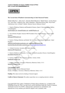 Rao, Medha Sridhar, Gaur, Aditya, Bharadwaj, Hareesha Rishab, Imran, Shahzeb, Tan, Joecelyn Kirani, Abbas, Saad, Fuad, Muhtasim, Abuhashem, Shadi, Shah, Muhammad Hamza et al (2025) The current state of paediatric gastroenterology in under resourced nations. Annals of Medicine & Surgery, 87 (4). pp. 2218-2228. ISSN 2049-0801
