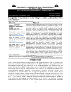 TRANSGENDER PERSPECTIVES ON SOCIAL ENTREPRENEURSHIP: AN EXPLORATION IN THE ASIAN CONTEXT.