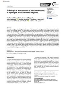 Tribological assessment of lubricants used in hydrogen assisted diesel engines.