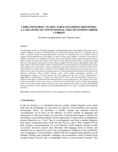 Georgakopoulou, Alexandra and Finnis, Katerina (2009) Code-switching ‘in site’ for fantasizing identities: A case study of conventional uses of London Greek Cypriot. Pragmatics, 19 (3). pp. 467-488. ISSN 1018-2101