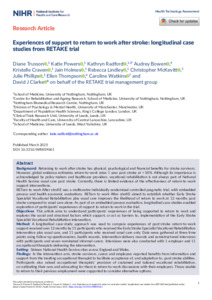 Trusson, Diane, Powers, Katie, Radford, Kathryn, Bowen, Audrey, Craven, Kristelle, Holmes, Jain, Lindley, Rebecca, McKevitt, Christopher, Phillips, Julie et al (2025) Experiences of support to return to work after stroke: longitudinal case studies from RETAKE trial. Health Technology Assessment . ISSN 1366-5278