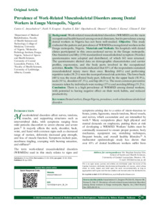 Prevalence of Work-Related Musculoskeletal Disorders among Dental Workers in Enugu Metropolis, Nigeria.