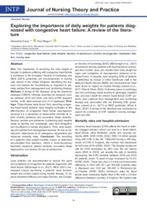 Evans, Alexandra and Regan, Paul John (2025) Exploring the importance of daily weights for patients diagnosed with chronic heart failure: A review of the literature. Journal of Nursing Theory and Practice, 1 (1). pp. 35-43. ISSN 2977-9243