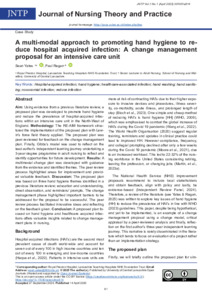 Yates, Sean and Regan, Paul John (2025) A multi-modal approach to promoting hand hygiene to reduce hospital acquired infection: A change management proposal for an intensive care unit. Journal of Nursing Theory and Practice, 1 (1). pp. 61-71. ISSN 2977-9243