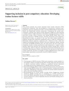 Dawson, Siobhan (2025) Supporting inclusion in post-compulsory education: Developing trainee lecturer skills. Support for Learning . ISSN 0268-2141