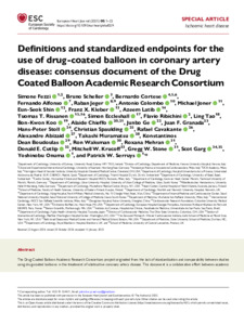 Fezzi, Simone, Scheller, Bruno, Cortese, Bernardo, Alfonso, Fernando, Jeger, Raban, Colombo, Antonio, Joner, Michael, Shin, Eun-Seok, Kleber, Franz X et al (2025) Definitions and standardized endpoints for the use of drug-coated balloon in coronary artery disease: consensus document of the Drug Coated Balloon Academic Research Consortium. European Heart Journal, 46 (26). pp. 2498-2519. ISSN 0195-668X