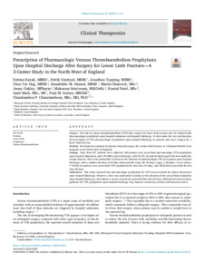 Kayali, Fatima, Nautiyal, Hritik, Topping, Jonathan, Ong, Chea Tze, Ahmed, Emadeldin M., Sharrock, Martin, Oakley, Jenny, Srinivasan, Makaram, Patel, Kuntal et al (2025) Prescription of Pharmacologic Venous Thromboembolism Prophylaxis Upon Hospital Discharge After Surgery for Lower Limb Fracture—A 3-Center Study in the North-West of England. Clinical Therapeutics, 47 (7). e1-e5. ISSN 0149-2918