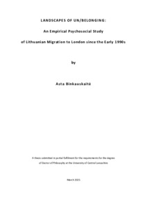 Binkauskaite, Asta (2025) Landscapes of Un/belonging: An Empirical Psychosocial Study of Lithuanian Migration to London since the Early 1990s. Doctoral thesis, University of Central Lancashire.