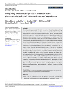 Navigating Medicine and Justice: A Life History and Phenomenological Study of Forensic Doctors’ Experiences.