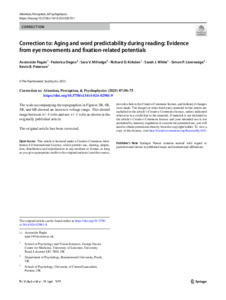 Correction to: Aging and word predictability during reading: Evidence from eye movements and fixation-related potentials.