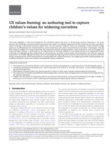 Caelenberghe, Mathias, Lochrie, Mark orcid iconORCID: 0000-0002-7909-8455 and Read, Janet C orcid iconORCID: 0000-0002-7138-1643 (2025) UX Values Framing: An Authoring Tool To Capture Children's Values for Widening Narratives. Interacting with Computers, 37 (5). pp. 457-480. ISSN 0953-5438