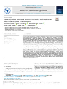 Hanif, Muhammad, Munir, Ehsan Ullah, Rehan, Muhammad Maaz, Ahmad, Saima Gulzar, Khan, Imtiaz and Setchi, Rossitza (2025) Tiered Blockchain Framework: A Secure, Trustworthy, and Cost-Efficient Solution for the Digital Rights Protection. Blockchain: Research and Applications, 6 (4). p. 100308.