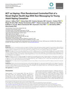 ACT on Vaping: Pilot Randomized Controlled Trial of a Novel Digital Health App with Text Messaging for Young Adult Vaping Cessation.